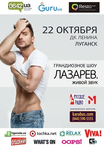 Шоу «Лазарев» - это современная, качественная поп-музыка, живой звук, драйв и бешеная энергетика Артиста и его команды. Всё это уже давно стало фирменным знаком Лазарева.