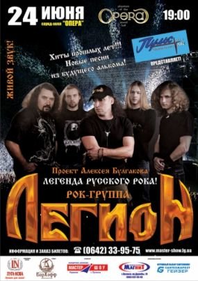 24 июня в 19.00 в Луганске в саунд-холле «Opera» состоится концерт знаменитой российской хеви-металл группы «Легион».