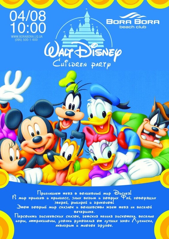 "Bora Bora" beach club приглашает тебя в волшебный мир Диснея! В мир принцев и принцесс, злых ведьм и добрых Фей, говорящих зверей, рыцарей и драконов!