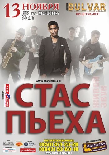 Стас Пьеха – талантливый певец и поэт. Его появление на сцене было предначертано самой судьбой: внук легендарной певицы Эдиты Пьехи не мог не продолжить артистическую династию. Стас покоряет сердца зрителей своим обаянием и лирикой. Его сегодняшний статус одного из самых любимых исполнителей подкреплен признанием публики и многочисленными наградами, среди которых 6 «Золотых граммофонов», премии MTV «Russia Music Awards», «Звуковая дорожка», «Муз-ТВ» и др.