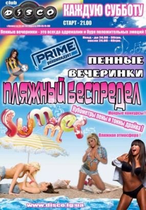Каждую субботу - "ПЛЯЖНЫЙ БЕСПРЕДЕЛ" - ПЕННЫЕ ВЕЧЕРИНКИ in club DISCO !