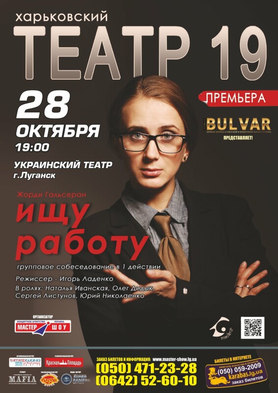 Художественный руководитель «Театра 19» Игорь Ладенко представил зрителям воплощение пьесы «Метод Гронхольма» каталонского драматурга Жорди Гальсерана. Эта постановка о современных методах отбора офисных работников, и о том, как эти «забавы» деформируют личность соискателей. По словам режиссера, название было изменено для того, чтобы четко расставить акценты спектакля да и не мучить зрителей запоминанием фамилии немецкого психолога.