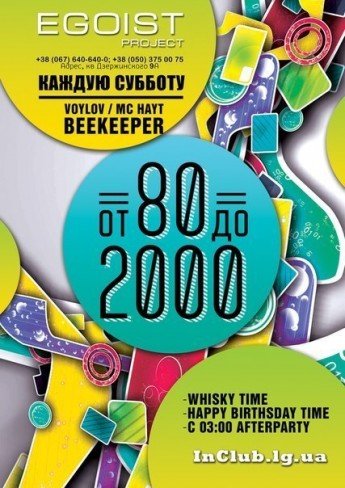 Каждую субботу в Egoist Project звучат лучшие хиты от 80-х до 2000-х годов!