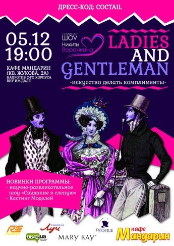 В первый четверг декабря пройдет очередная встреча под названием: "Ladies and Gentleman: искусство делать комплименты".