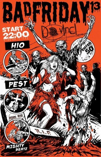 Приглашаем всех в арт-ресторан Da'Vinci на ночь кошмарных танцев под хоррор диско, вампайр хаус, грязный маями-бэйс, мистический гетто-фанк и кровавый алдскульный хип-хап заправленный густыми скрейтчами!
