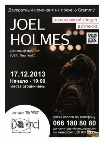 Беспрецендентное событие на просторах Луганщины! Джоэл Холмс, джазовый пианист из США, двукратный номинант на премию Грэмми с эксклюзивным концертом.