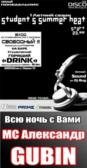 Каждый ЛЕТНИЙ понедельник - "Student's Summer Heat" !
