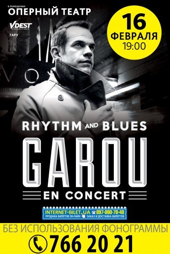 Гару презентует свою новую пластинку, которую на протяжении полутора лет музыкант кропотливо готовил для поклонников в лондонской студии. Альбом "Rhythm and blues" полностью оправдывает свое название – это классика блюза в шикарном исполнении, дань уважения таким выдающимся исполнителям, как Том Уэйтс, Джо Кокер и Нина Саймон. "Rhythm and blues" — это каверы легендарных композиций, и возвращение к началу музыкальной карьеры Гару. К тому, за что его полюбили. Новый тур Garou комментирует так: "Я хочу отправиться в турне с "Rythm’n'Blues", потому что эти песни сделаны для исполнения на сцене и я чувствую, что на концертах будет полное сумасшествие! На сцене я хочу воссоздать атмосферу музыкального бара и наполнить ее энергией, будто бы все происходящее – полная импровизация".