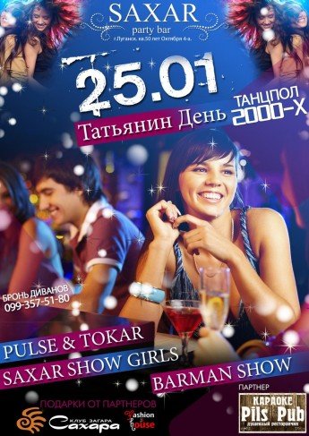 Тебя ждет то, чего не хватало всю неделю: старые друзья и приятные знакомства, вечные хиты и модные мотивы всего 21-ого века, вспышки фотоаппаратов и красивые лица, море коктейлей и брызги шампанского, а потом - приятная амнезия и яркие воспоминания!