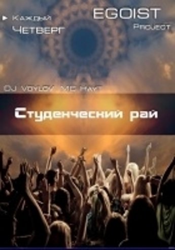 Каждый четверг в ночном клубе "Эгоист" вечеринка "Студенческий Рай" - все для студентов!