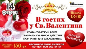 В День Святого Валентина ресторан Корона дарит влюбленным всю свою теплоту, щедрость и гостеприимство!