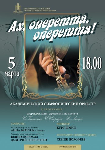 Увертюры, арии, фрагменты из оперетт - И. Кальмана, И. Штрауса, Ф. Легара.