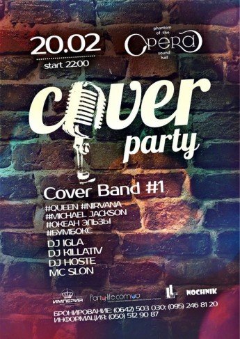 Впервые в Луганске. Cover Party ((от англ. cover — покрывать) - авторская музыкальная композиция (часто известная) в исполнении другого музыканта или коллектива) на любимые многими группы, а именно: