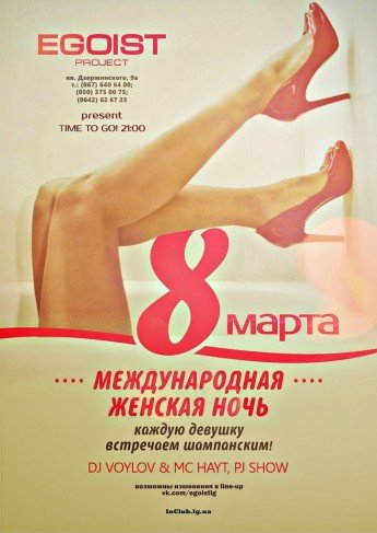 Приглашаем всех на празднование международного женского для в Egoist club.