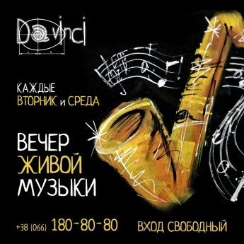 Дорогие друзья, спешим напомнить вам о том, что каждые вторник и среда вечер живой музыки в Da' Vinci.