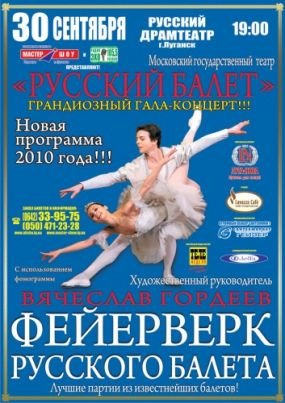 Представление Московского Государственного театра «РУССКИЙ БАЛЕТ», под руководством народного артиста СССР, солиста Большого театра, звезды мирового балета, выдающегося танцовщика и балетмейстера Вячеслава ГОРДЕЕВА!!!