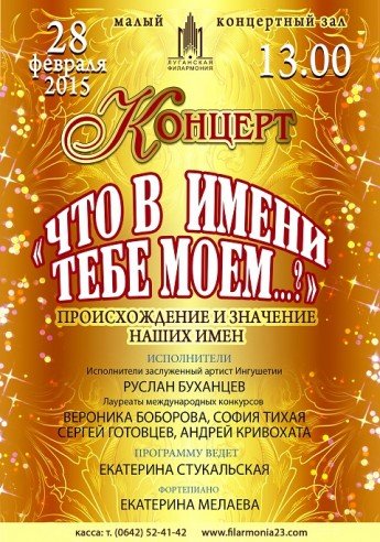 Концерт «Что в имени тебе моем...?» - происхождение и значение наших имен.