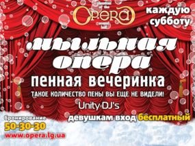 Саунд-холл Опера и Unity DJs представляют новые грандиозные развлечения. Такое количество белой и пушистой пены вы еще не видели. Две огромных пеномашины, сотни девушек в бикини и самая зажигательная музыка на серии пляжных вечеринок Мыльная Опера.