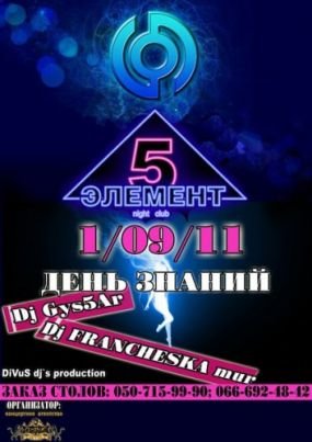 1 сентября в ночном клубе 5 Элемент состоится День Знаний!