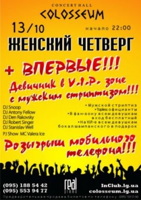 Это всё и еще многое другое ждет вас каждый четверг на V.I.P. Девичнике в КХ Колизей!