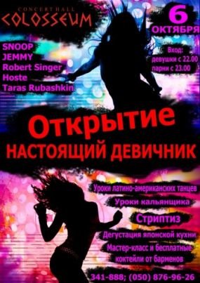 Важно! Начало вечеринки - для девушек - 22:00, для парней - 23:00!