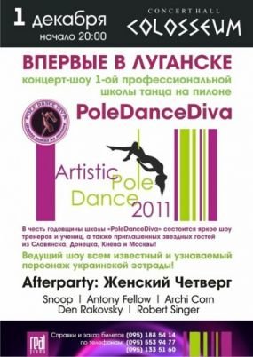 В честь годовщины школы «PoleDanceDiva» состоится яркое шоу тренеров и учениц, а также приглашенных звездных гостей из Славянска, Донецка, Киева и Москвы!