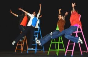 Есть яркая цветовая гамма, способная порадовать детский глаз, но тут же - непривычный ребенку минимализм декораций: никаких елочек, шишечек, ручейков и домиков, - всего четыре разноцветные стремянки по числу героев.
