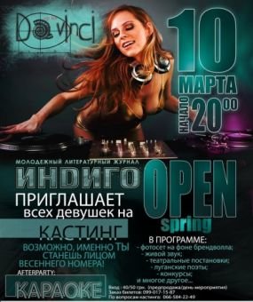 Молодежный литературный журнал "Индиго" в рамках празднования Международного женского дня приглашает всех девушек на необычный кастинг Open spring.