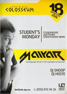 И снова каждый понельник к-х Colosseum открывает свои двери перед самой лучшей, креативной, прогрессивной и оторванной частью человечества – студентами!