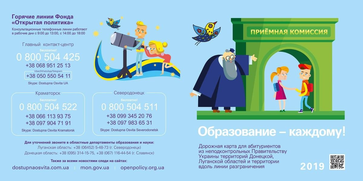 Даний проект «Гаряча лінія освіти на непідконтрольних уряду територіях» організовує ГО «Фонд «Відкрита політика» в партнерстві з Донецькою та Луганською ОДА та виконується в рамках проекту «Зміцнення громадської довіри» (UCBI II), що фінансується Агентством США з міжнародного розвитку (USAID).