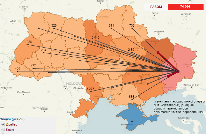 Куда переехали переселенцы с востока Украины (ВИЗУАЛИЗАЦИЯ)